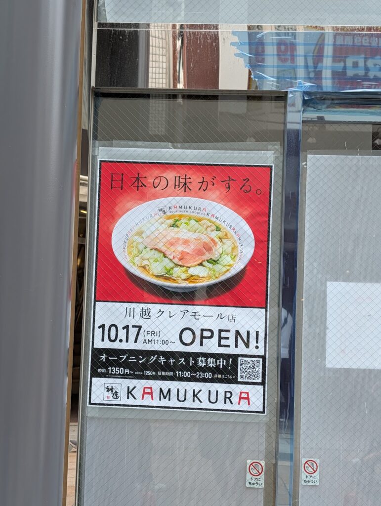 川越クレアモールに10月、また有名ラーメン店がオープンします!